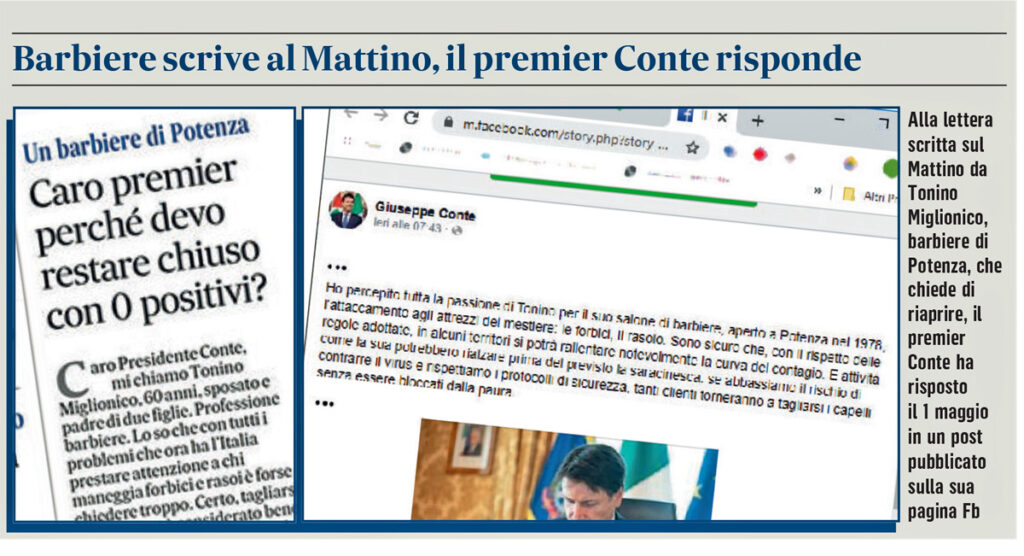 Il 29 aprile Tonino, salone in via Petruccelli a Potenza, scrive al presidente del Consiglio
